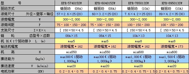 KPR-SW系列驅動輸送機使用雙排鏈條驅動,使用大強度的滾筒,適用于搬運大重量物品場合。